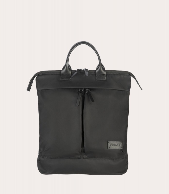 Sporty business shopper made of recycled nylon with leather accents and a roomy central compartment with protective pocket for 15.6" laptops or 16" MacBooks. With an ample front pocket that features a zip closure and an excellent internal organization, the Desert Premium shopper also converts into a backpack, thanks to the two shoulder straps that can be tucked away into a pocket located on the back panel.