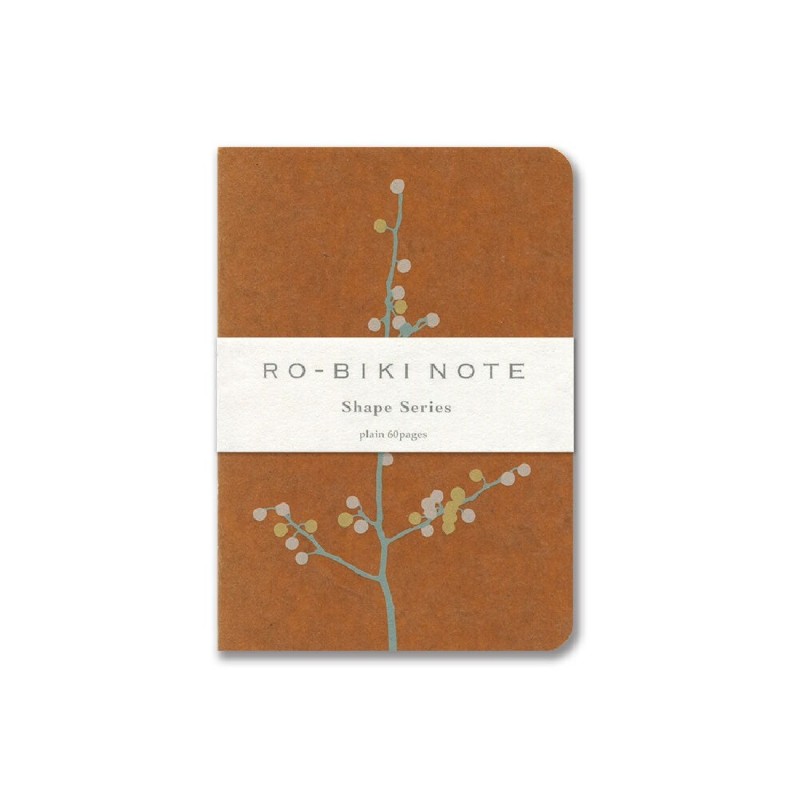``RO-BIKI NOTE\'\' is a product that uses ro-biki-treated paper for the cover, so the more you use it, the more wrinkles and scratches it will cause, giving it a leather-like aging effect. Making it the same size as an actual passport makes it easier to carry. It can also be used as a travel companion or for writing daily memos. "RO-BIKI NOTE SHAPE SERIES" is a new series that takes advantage of the contrast expression of waxed printing. By purposely creating areas with white background and areas that are not, and applying a wax coating after printing, we create transparent areas and non-transparent areas, creating a beautiful contrast. 60 pages Binding size: 88 x 125mm Text: 5mm dots Rough premium writing paper Binding: Thread binding and glue hardening