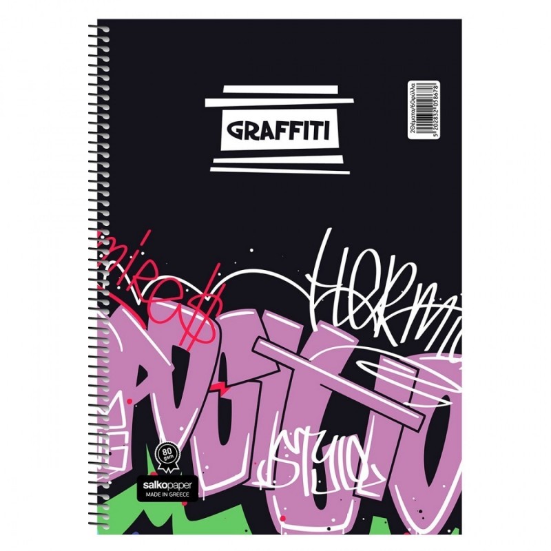 Τετράδιο Σπιράλ Graffiti 17x25 4 θέματων 120φ Salko