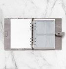 Keep your contacts safe with this transparent business card holder for your Filofax A5 organiser. Holds eight cards.