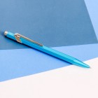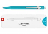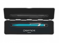 Caran Dache 849 metallic turquoise ballpoint pen, with slim metal box C