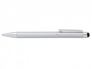 Sheaffer metal ballpoint pen in silver with chrome-plated details and integrated stylus for use on touch-screen devices.