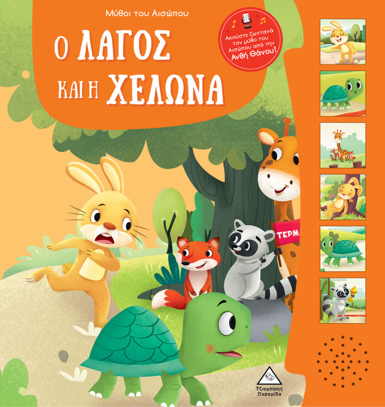 Στο υπέροχο αυτό βιβλίο θα διαβάσετε και θα ακούσετε την ιστορία του λαγού και της χελώνας που αποφάσισαν να τρέξουν έναν αγώνα ταχύτητας.