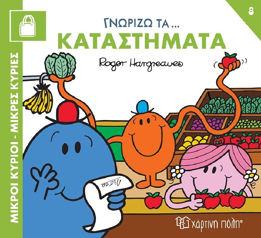 Οι Μικροί Κύριοι και οι Μικρές Κυρίες πηγαίνουν στα καταστήματα για να κάνουν τα ψώνια τους. Θα θυμηθεί ο κύριος Ξεχασιάρης τι θέλει να ψωνίσει, θα βρει ο κύριος Τσιγγούνης την καλύτερη προσφορά και ποιο κατάστημα έχει η κυρία Αγκαλίτσα; Ακολούθησε τους Μικρούς Κυρίους και τις Μικρές Κυρίες στα Καταστήματα και διασκέδασε μαθαίνοντας έναν σωρό πράγματα για έναν σωρό απίθανα επαγγέλματα.