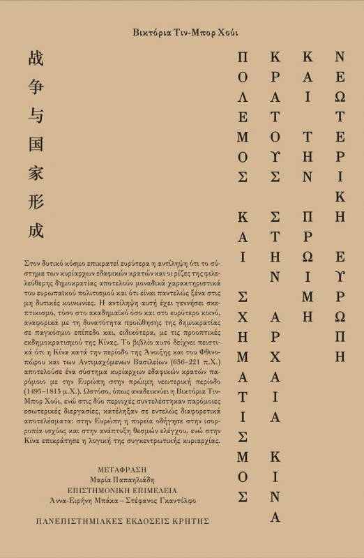 Στον δυτικό κόσμο επικρατεί ευρύτερα η αντίληψη ότι το σύστημα των κυρίαρχων εδαφικών κρατών και οι ρίζες της φιλελεύθερης δημοκρατίας αποτελούν μοναδικά χαρακτηριστικά του ευρωπαϊκού πολιτισμού και ότι είναι παντελώς ξένα στις μη δυτικές κοινωνίες. Η αντίληψη αυτή έχει γεννήσει σκεπτικισμό, τόσο στο ακαδημαϊκό όσο και στο ευρύτερο κοινό, αναφορικά με τη δυνατότητα προώθησης της δημοκρατίας σε παγκόσμιο επίπεδο και, ειδικότερα, με τις προοπτικές εκδημοκρατισμού της Κίνας. Το βιβλίο αυτό δείχνει πειστικά ότι η Κίνα κατά την περίοδο της Άνοιξης και του Φθινοπώρου και των Αντιμαχόμενων Βασιλείων (656?221 π.Χ.) αποτελούσε ένα σύστημα κυρίαρχων εδαφικών κρατών παρόμοιο με την Ευρώπη στην πρώιμη νεωτερική περίοδο (1495?1815 μ.Χ.). Ωστόσο, όπως αναδεικνύει η Βικτόρια Τιν-Μπορ Χούι, ενώ στις δύο περιοχές συντελέστηκαν παρόμοιες εσωτερικές διεργασίες, κατέληξαν σε εντελώς διαφορετικά αποτελέσματα: στην Ευρώπη η πορεία οδήγησε στην ισορροπία ισχύος και στην ανάπτυξη θεσμών ελέγχου, ενώ στην Κίνα επικράτησε η λογική της συγκεντρωτικής κυριαρχίας.