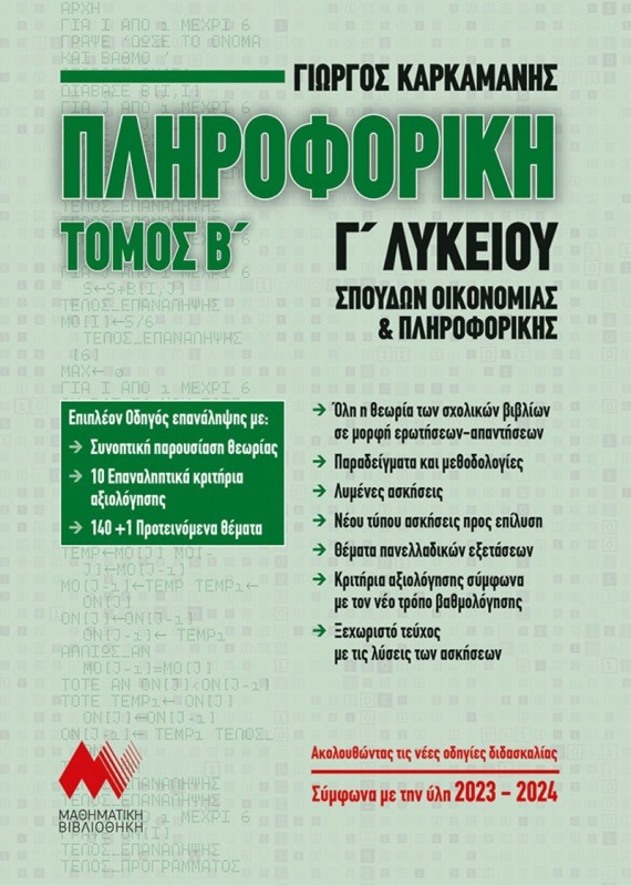 Ο τόμος B΄ αποτελεί συνέχεια του τόμου Α΄ και γράφτηκε για τις ανάγκες του πανελλαδικώς εξεταζόμενου μαθήματος ΠΛΗΡΟΦΟΡΙΚΗ που διδάσκεται στη Γ΄ τάξη των ημερησίων και εσπερινών ΓΕΛ.