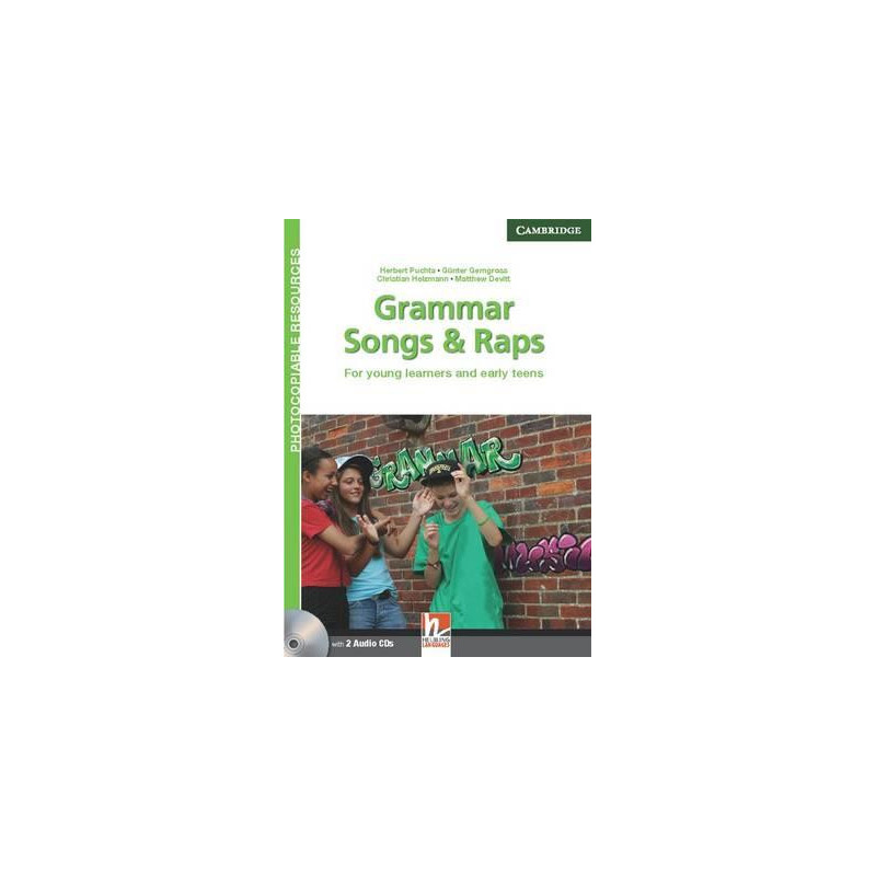 Songs and Grammar Raps for young learners and teens covers key grammar structures for levels A1 and A2. It offers 21 original songs and raps, one per grammar structure, for presenting and practising key grammar structures in fun, dynamic and multi-sensory ways to help students remember the structures better and anchor them in their long-term memory. The book contains photocopiable handouts, and is accompanied by two audio CDs containing all the songs and raps. For each song or rap you will find clear, step-by-step teaching notes, including lead-in activities, listening tasks and game-like follow up activities.