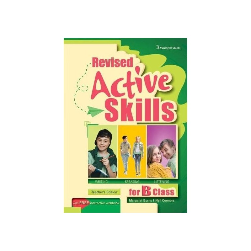 Revised Active Skills for B Class. Writing * Listening * Speaking: 10 topic-based units, structured writing programme with models and plans, dialogues and communicative activities, pre-listening activities followed by a variety of listening tasks, sticker activities, My Project pages, glossary, Class Audio Material, Whiteboard Software and interactive webbooks