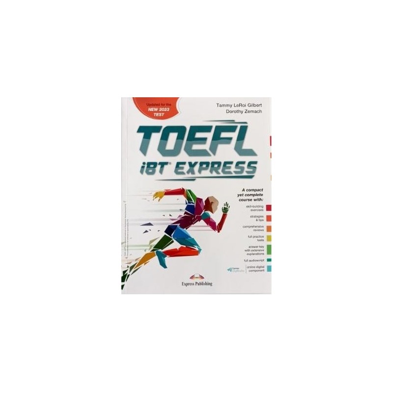 This TOEFL study guide offers a concise and engaging coverage of the skills, strategies, and knowledge to improve both your test score and your academic English in a much shorter amount of time than with standard TOEFL iBT® test preparation textbooks. Perfect for use as a primary course book or for independent study, TOEFL iBT ®Express helps you quickly and thoroughly prepare for the TOEFL iBT® test: Brief yet complete explanations and computer screen pictures of each question type clearly show what you will see on the day of the test. Skill Builders provide fully supported lessons to teach the most important skills and strategies for each specific question type . Authentic practice of the skills lets you apply what you learned in the Skill Builders to sample test items in the TOEFL iBT ®test style. Nearly 100 Express tips offer useful suggestions on everything from grammar and vocabulary to self-study advice and test-taking strategies. Special attention is given to the Speaking and Writing sections, two of the most challenging sections. Post - Tests for each section provide additional practice with all of the specific section skills. Two full Practice Tests simulate the test in content and length, further preparing you for success. An Answer Key with comprehensive answer explanations for all questions helps you understand why answers are correct or incorrect. Includes samples for Speaking and Writing answers. A complete Audioscript is included. A full audio MP3 program can be downloaded from the Express Publishing website Teacher\'s Corner Free Resources Audio CDs. The Express Digibooks platform offers a complete online/offline digital version of the book, including instant feedback on all tasks and progress monitoring reports. It is designed for use at home, in the language lab, or on the move.