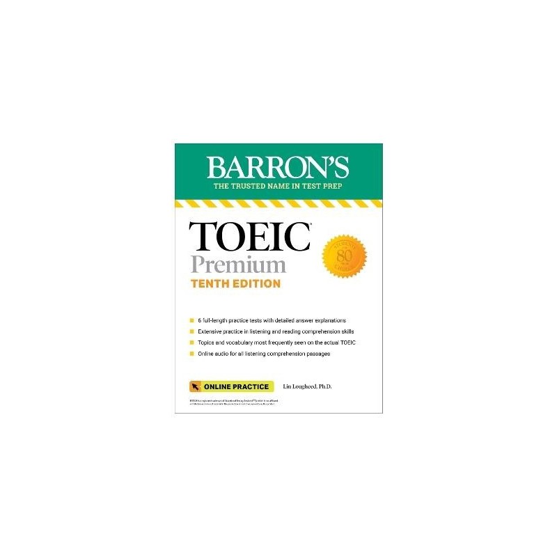 Barron’s TOEIC Premium is designed for ESL students preparing to take the Test of English for International Communication. Test-takers will find: Extensive practice in listening and reading comprehension skills Six full-length practice tests identical in format and question types to the current TOEIC with answer explanations for all questions Topics and vocabulary most frequently seen on the actual TOEIC Online audio for all six TOEIC listening comprehension sections Recommendations for web-based self-study activities Publisher\'s Note: Products purchased from 3rd party sellers are not guaranteed by the publisher for quality, authenticity, or access to any online entities included with the product.