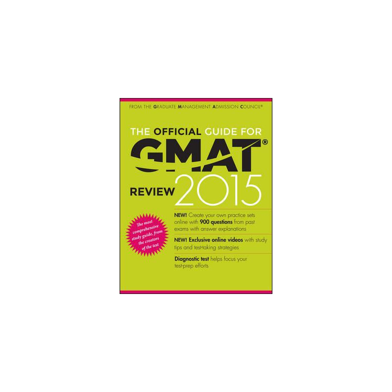 This is the only official study guide from the creators of the test and delivers more than 900 retired GMAT(R) questions and answer explanations and a 100- question diagnostic exam to help focus your test preparation efforts. NEW to The Official Guide for GMAT(R) Review 2015: * Access to the online Question Bank including more than 900 practice questions of all types with answers and explanations, math review, essay topics, and a diagnostic test, as well as access to 50 online integrated reasoning questions. * Exclusive access to videos from real test takers and GMAC staff who share insight and tips on GMAT(R) preparation.