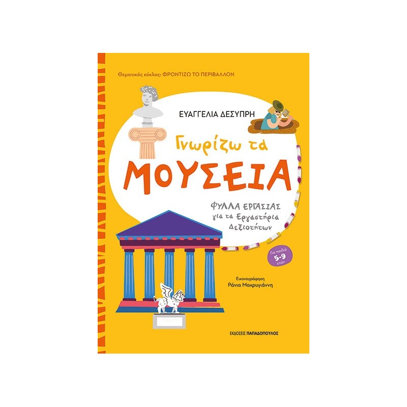 Ένα βιβλίο που δίνει στα παιδιά την ευκαιρία να κατανοήσουν τον ρόλο των μουσείων στην προστασία και στην προβολή της πολιτιστικής μας κληρονομιάς, καθώς και να αναπτύξουν δεξιότητες έτσι ώστε η εμπειρία της επίσκεψης σε ένα μουσείο να γίνει πιο ενδιαφέρουσα και δημιουργική.