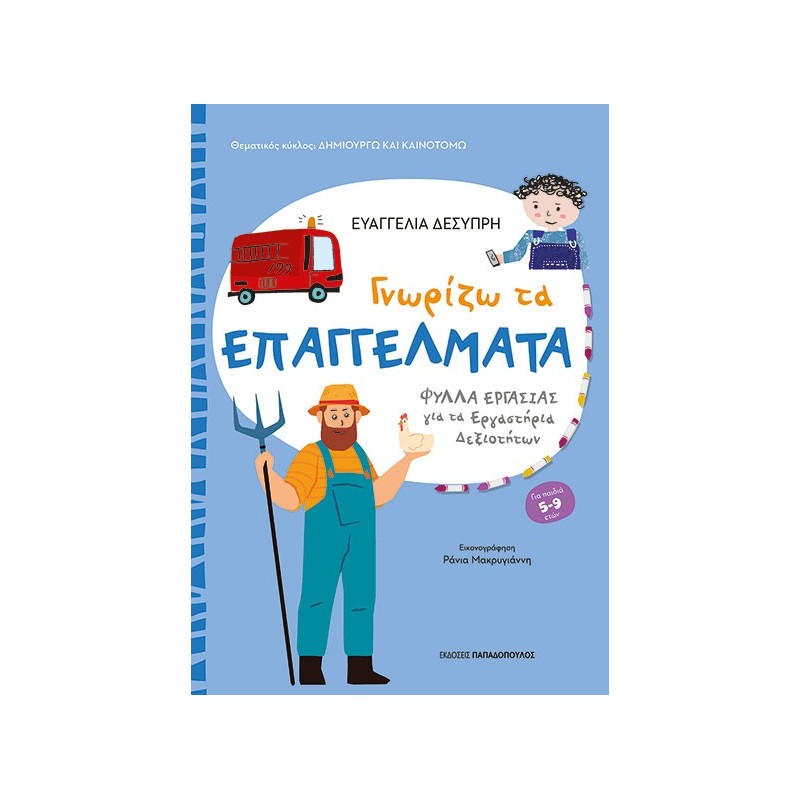 Ένα βιβλίο που δίνει στα παιδιά την ευκαιρία να ανακαλύψουν τον κόσμο των επαγγελμάτων και να αναγνωρίσουν τη σημασία τους στην κοινωνία και στην καθημερινή ζωή των ανθρώπων.
