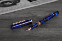 Crafted from a striking deep indigo acrylic flecked with shimmering accents, the Kai is accented with rose gold trim for a refined and elegant finish. This pen exudes depth and sophistication, often appearing far more luxurious than its price point would suggest. Unique to the Kai is the absence of TWSBI’s signature red finial; instead, the cap features a subtly engraved TWSBI logo, lending a sleek and understated aesthetic.