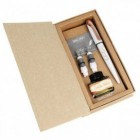 contains 3 calligraphy nibs: 0,8mm -1,4mm - 1,8mm and a golden yellow 15ml ink.