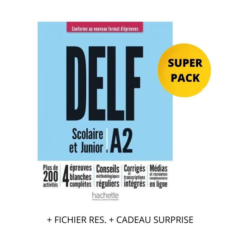 DELF SCOLAIRE & JUNIOR A2 SUPER PACK (+ FICHIER RES. + CADEAU SURPRISE) NOUVEAU FORMAT
