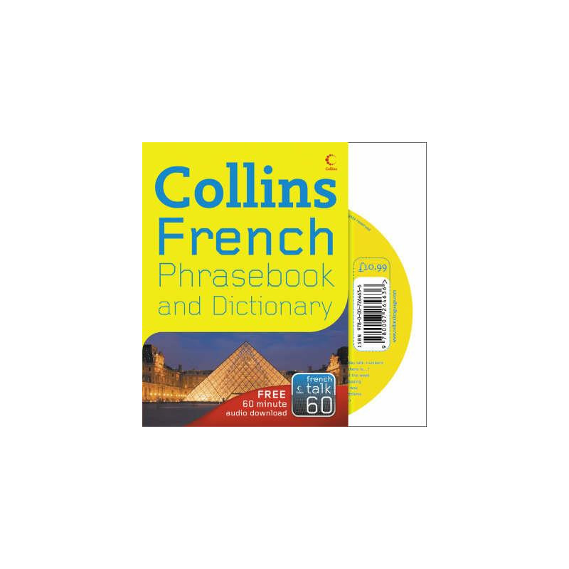With Collins French Phrasebook and Dictionary you will sound and speak like a native. The hour-long audio CD is ideal for practicing pronunciation, listening comprehension and becoming more confident, not just in speaking but in understanding others when abroad. Collins French Phrasebook and Dictionary is \'four books in one, - a photoguide, a phrasebook, a food guide containing a menu reader and a 5,000-word dictionary. The phrases are short and easy to use. The language reflects everyday speech - there are no lengthy sentences to struggle and sweat over. The phrases have a simple guide to help with pronunciation. There are also practical tips to help you make the most of your visit abroad. The new 4-colour layout allows easy access to key information. Collins French Phrasebook and Dictionary isn,t just for emergencies. The specially commissioned food guides describe the different regional dishes and wines. They also contain a comprehensive menu reader to guide you through the maze of menus. The 60-minute long CD covers all the essential phrases needed to get by. They are presented clearly and slowly by a native speaker and all words and phrases are repeated twice. The listening material provides a chance to practise and learn key words and vocabulary before you embark on your travels. Repeated listening will ensure that you will recognize much of what is said to you abroad and will give you extra confidence in your pronunciation.