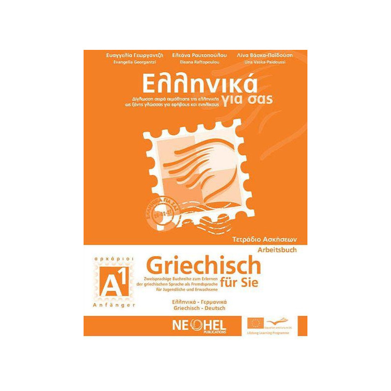 Το τετράδιο ασκήσεων Ελληνικά για σας Α1 αποτελεί μέρος της σειράς εκμάθησης ελληνικών Ελληνικά για σας. Το τετράδιο ασκήσεων Α1 καλύπτει απόλυτα την ύλη που απαιτείται για τις εξετάσεις του Πιστοποιητικού Ελληνομάθειας Α1 του Κ.Ε.Γ. (Κέντρο Ελληνικής Γλώσσας). Το τετράδιο περιλαμβάνει συνολικά 705 ασκήσεις (580 προφορικές και γραπτές), 25 τεστ αξιολόγησης στις 4 δεξιότητες (100 ασκήσεις αξιολόγησης). Το τετράδιο των ασκήσεων συμπληρώνεται από ηχητικό υλικό (περιλαμβάνεται στο CD mp3 του βιβλίου του μαθητή 4 ωρών) και τις λύσεις των ασκήσεων στην ιστοσελίδα της NEOHEL (www.neohel.com). ΑΣΚΗΣΕΙΣ 580 Προφορικές, γραπτές & ασκήσεις τονισμού και προφοράς 25 Τεστ αξιολόγησης στις 4 δεξιότητες (100 ασκήσεις) 25 Τραγούδια-ασκήσεις