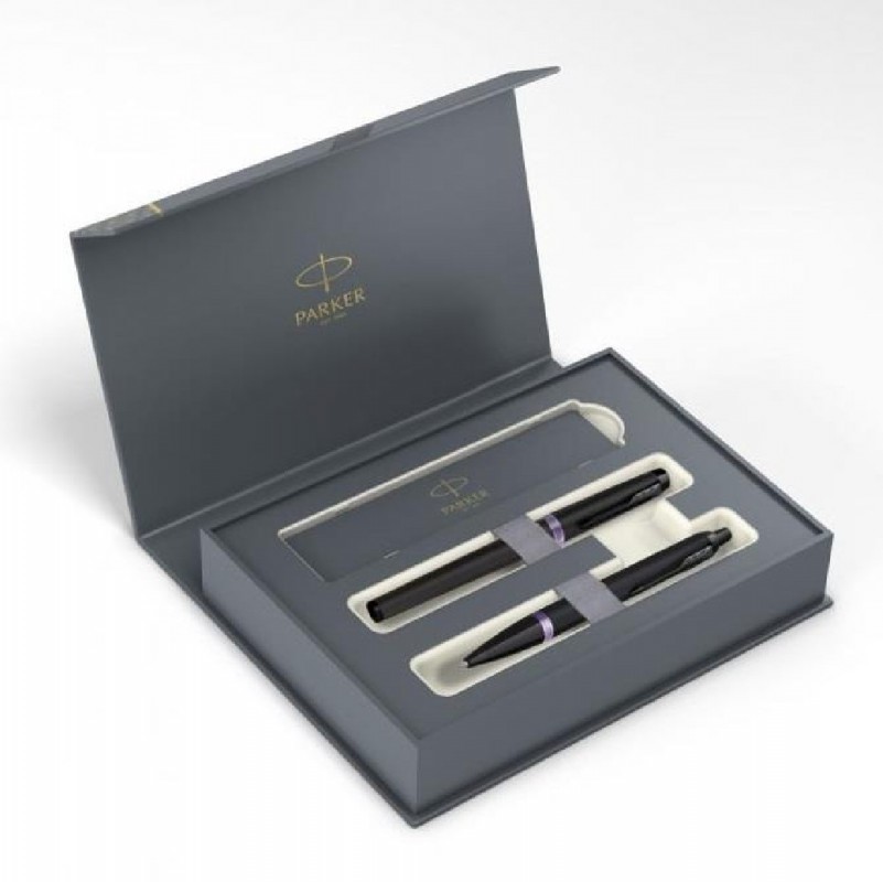 Parker IM Vibrant Rings Amethyst Purple Set Rollerball and Ballpen.