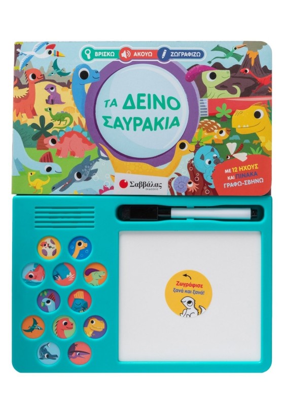 Γνώρισε απίθανα δεινοσαυράκια και άκουσέ τα να περνούν με ποδοβολητό, να μασουλούν με όρεξη και να γελούν βροντερά! Μετά ζωγράφισέ τα ξανά και ξανά!
