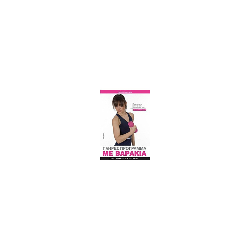 Θέλετε να χάσετε βάρος, να τονώσετε τους μύες σας, να αποκτήσετε πιο σφικτό και συμμετρικό κορμί, να αποκτήσετε μεγαλύτερη δύναμη και περισσότερη αντοχή; Τώρα το μπορείτε με το "Πλήρες πρόγραμμα με βαράκια". Πρόκειται για ένα ολοκληρωμένο σχέδιο δράσης έξι (6) εβδομάδων, απλό και εύκολο στην εφαρμογή, που ανταμείβει τις προσπάθειές σας με πραγματικά αποτελέσματα, ορατά από την πρώτη κιόλας στιγμή: μέρα με τη μέρα θα βλέπετε το σώμα σας να αλλάζει και να αναδιαμορφώνεται - φυσικά, πάντα προς το καλύτερο!