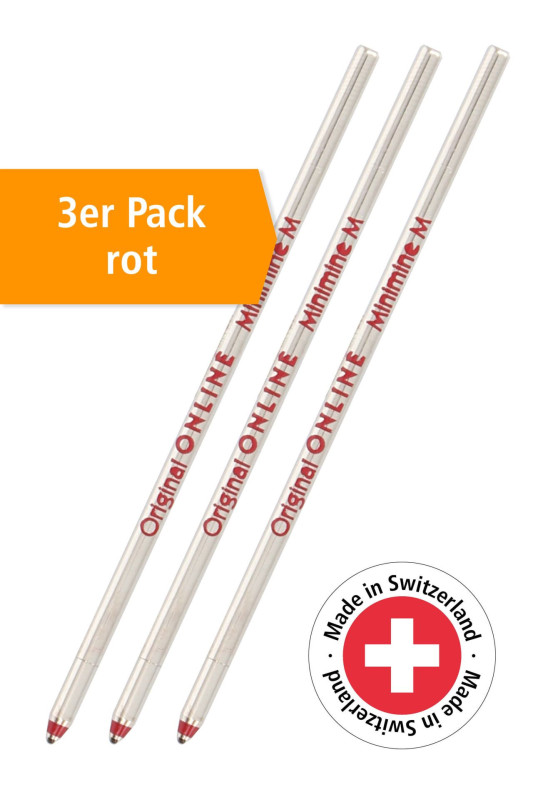 Ballpen refill,standard D1, high quality, made in Germany, metal, width M, blue ink, documentary proof, water proof; stainless steel ball; also available in black, green and red, and in width B (broad) in orange ink; ISO 12757-2 DOC; Content: 3 refills