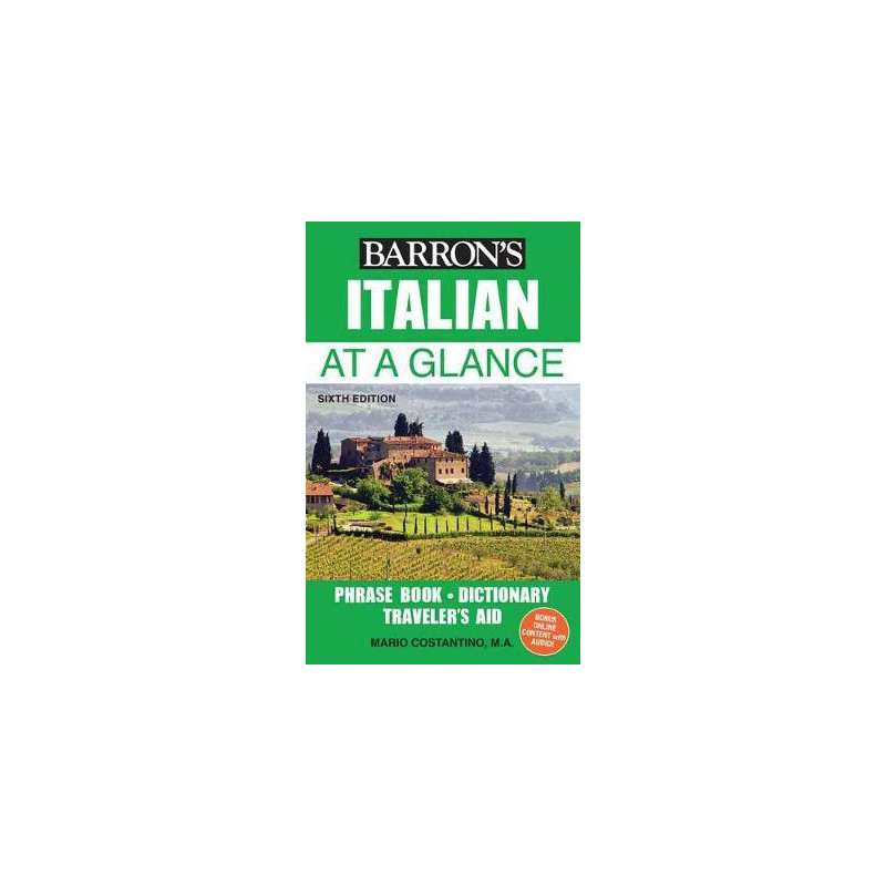 Travelers to foreign countries constantly praise these pocket-size phrasebooks for their portability, durability, travel tips, and their many easy-to-find phrases that apply to all kinds of travel situations You\'ll find approximately 2,500 words and expressions in both English and Italian, plus pronunciation guidance. Each book includes: Useful bilingual phrases for checking into hotels, shopping, dining, and more Maps, advice on tipping, local customs, and more Travel information, words, and phrases apply for both tourists and business travelers A bilingual dictionary at the back of the book New editions of all Barron\'s At a Glance phrasebooks have been brought up to date with words and phrases pertaining to recent social customs, new idiomatic expressions, recent advances in technology, and more. Also includes free bonus online content with audio.