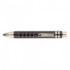 Mechanical propelling pencil, plastic with metal mechanical parts and lead diameter 5,6 mm, used for common writing and drawing. The lead is moved by pressing the knob in leaned pencil position, which opens the clamp and the lead is slid out. There is a sharpener in the knob and the lead can be sharpened after screwing the sharpener out. Black pencil envelope of round profile with metal clip.