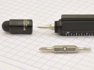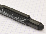 Under the stylus top are phillips and flat head screwdrivers, while on the barrel are a built- in level, ruler and 3 different scale functions.