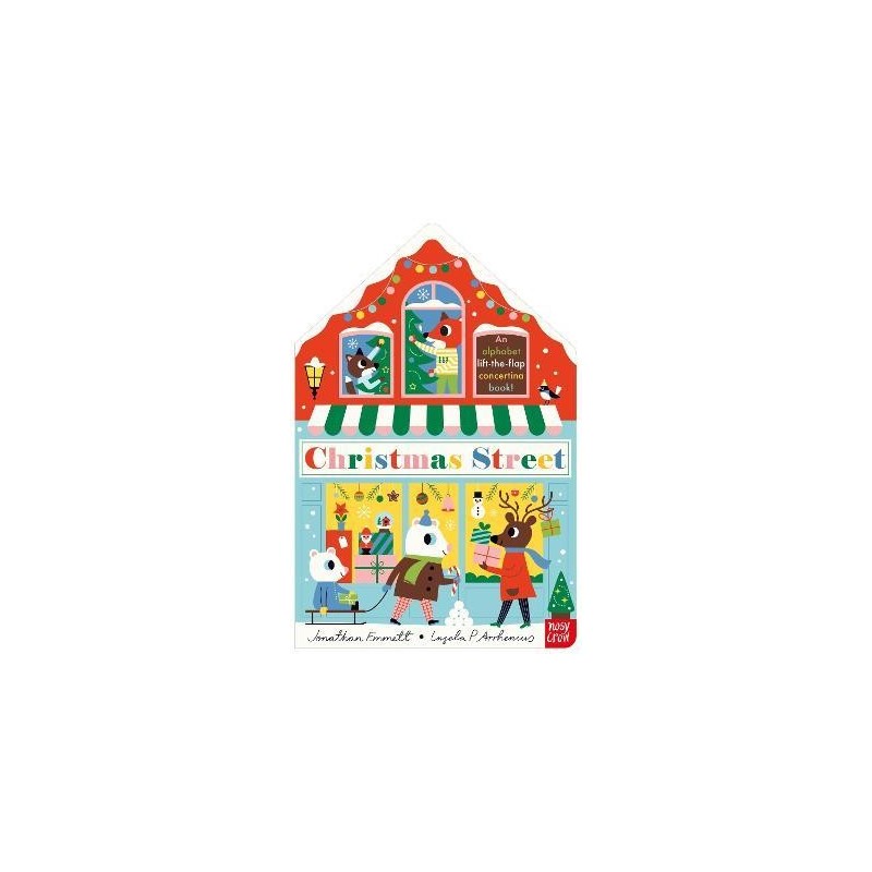 This spectacular lift-the-flap Christmas alphabet story is a book, a fold-out play-scene, and a beautiful festive frieze to decorate your room! Everyone is busy on Christmas Street! Who is baking gingerbread? Who is wrapping presents? And who\'s that coming down the chimney? Find out in this perfect Christmas gift book, the follow-up to Alphabet Street. With bright, cheerful artwork from Ingela P Arrhenius, illustrator of the bestselling Felt Flaps and Peekaboo series, and a clever rhyming text from Jonathan Emmett. Read the rhyming story, lift the festive flaps, learn the letters of the alphabet and seasonal words and then, when you\'re finished, flip the book and have fun with the giant snowy concertina play-scene on the reverse! With two big sturdy flaps on every spread, this is a charming Christmas alphabet book that little ones will return to again and again.