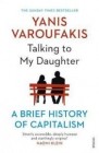 **THE SUNDAY TIMES BESTSELLER** Yanis Varoufakis, world renowned economist, writes to his daughter to teach her the hazards of capitalism. \'Why is there so much inequality?\' asked Xenia to her father. Answering her questions in a series of accessible and tender letters, Varoufakis educates her to what economics and capitalism is and why it is so dangerous. Taking from memories of her childhood and a variety of well-known tales - from Oedipus and Faust to Frankenstein and The Matrix - Varoufakis turns Talking To My Daughter into an enjoyable and engaging read, without ever shying from the harder truths. Greece\'s former finance minister explains everything you need to know to understand why economics is the most important drama of our times. In answering his daughter\'s deceptively simple questions, Varoufakis disentangles our troubling world with remarkable clarity and child-like honesty, as well as inspiring us to make it a better one. \'Utterly accessible, deeply humane and startlingly original - a potent democratic tool at the perfect time\' Naomi Klein, author of The Shock Doctrine