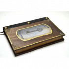 Σημειωματάριο με παράσταση κλειδιού, με ξύλινο εξώφυλλο, υφασμάτινο σελιδοδείκτη και δερμάτινη ράχη.