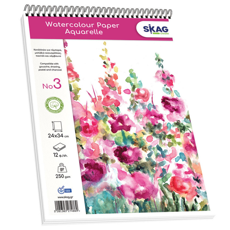 Μπλοκ Ακουαρέλας Όρθιο (24 x 34cm./12sh./250gr.) Νο.3 Skag,