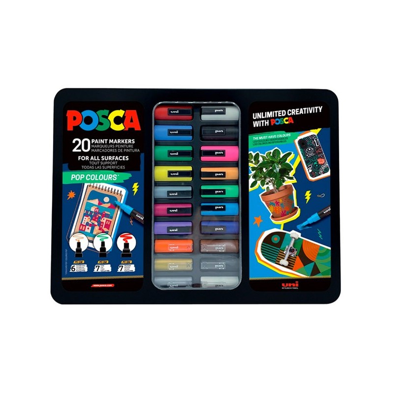 POSCA Paint Markers Pop Colours Collection Tin Set 20pc