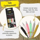 6 rich colours with high coverage: the highly pigmented acrylic paint dries quickly, is water-resistant and lightfast, so colours remain vibrant for a long time without running or fading.