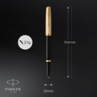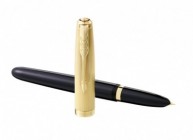 Durable glossy black precious resin barrel and chiselled gold finish cap and trims and the signature PARKER arrow clip