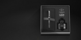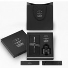 Presented in a Special Edition Parker gift box containing, 1x Special Edition Duofold, 1x Genuine Leather Pen Pouch, 1x Parker Quink Ink Bottle Black Ink, 1x Special Edition Booklet. The set also includes a Special Edition Parker gift bag.