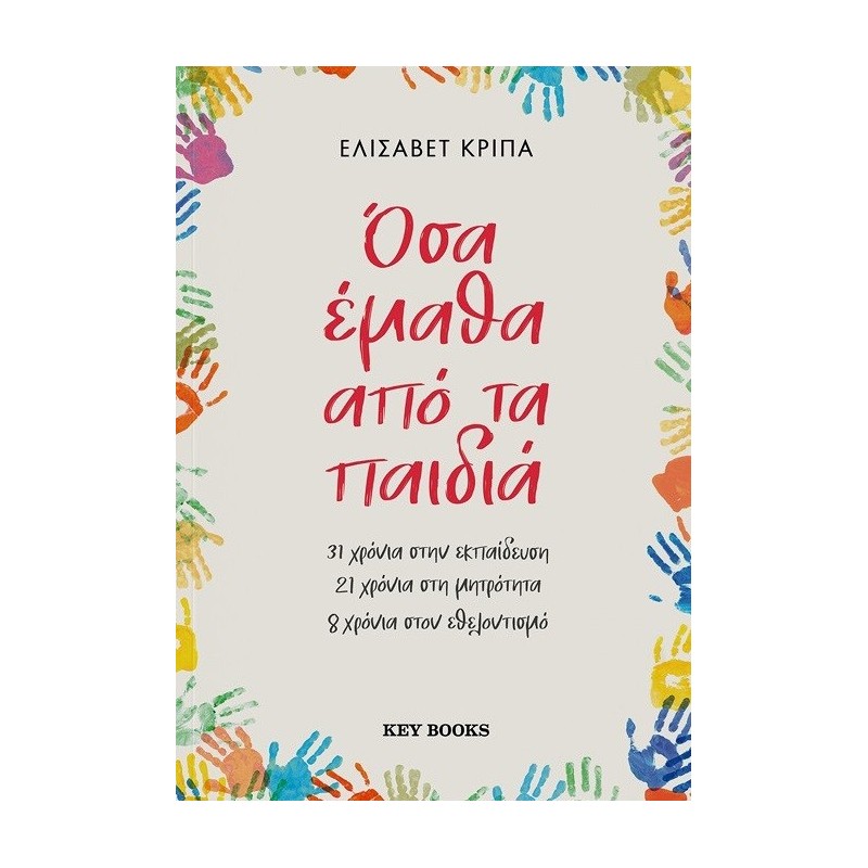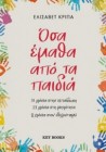 Υπάρχουν, όμως, επιλογές, λάθη και –το σημαντικότερο– ευκαιρίες να μάθουμε, να εξελιχθούμε και να γίνουμε καλύτεροι. Στο βιβλίο Όσα έμαθα από τα παιδιά, η εκπαιδευτικός, μητέρα και εθελόντρια Ελισάβετ Κρίπα μοιράζεται με ενσυναίσθηση τις εμπειρίες της και μας δείχνει πώς να επικοινωνούμε ουσιαστικά με τα παιδιά μας, να ξεπερνάμε ενοχές και να γινόμαστε συνοδοιπόροι τους χωρίς να χάνουμε τον εαυτό μας. Μέσα από προσωπικές ιστορίες και πρακτικές συμβουλές, αυτό το βιβλίο δεν δίνει έτοιμες απαντήσεις – αλλά προσφέρει τα εργαλεία για να βρούμε τις δικές μας. Είναι ένας διαρκής αγώνας αυτοβελτίωσης, που μας καλεί να αλλάξουμε τον εαυτό μας και τον κόσμο γύρω μας. To βιβλίο αυτό φωτίζει τα μονοπάτια που οδηγούν σε βαθύτερη σύνδεση με τα παιδιά μας και τον εαυτό μας. Θα σε εμπνεύσει, θα σε κινητοποιήσει και θα σου δώσει δύναμη ν’ αλλάξεις όσα χρειάζονται – με αγάπη, ενσυναίσθηση και φροντίδα. Γιατί η ζωή, όπως κατά κανόνα ισχύει, δεν είναι και δεν έχει έτοιμες λύσεις. Είναι το ταξίδι που επιλέγεις να κάνεις.