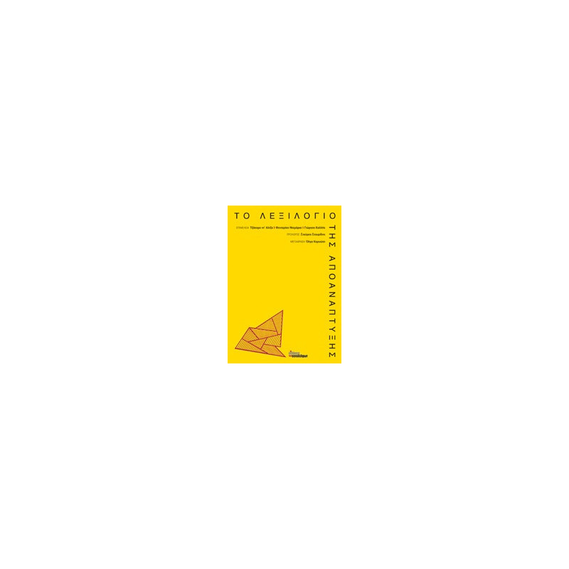 Το λεξιλόγιο της αποανάπτυξης είναι το πρώτο βιβλίο στην ελληνική γλώσσα που έρχεται να καλύψει πλήρως την έκρηξη της βιβλιογραφίας σχετικά με το θέμα. Παρουσιάζει και εξηγεί τις διαφορετικές γραμμές σκέψης και προτείνει τρόπους δράσης που μαζί συμπληρώνουν το παζλ της αποανάπτυξης. Το βιβλίο συγκεντρώνει κείμενα κορυφαίων επιστημόνων, νέων ερευνητών, αλλά και ακτιβιστών που κάνουν πράξη την αποανάπτυξη "εδώ και τώρα".
