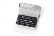 Pelikan now offers elegant metal cases filled with 6 large capacity cartridges. Every single cartridge is decorated with the Edelstein Ink logo.