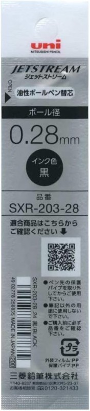 Uni Mitsubishi refill Jetstream Edge SXR-203-28.24 Ballpoint Pen Refill, 0.28, Black