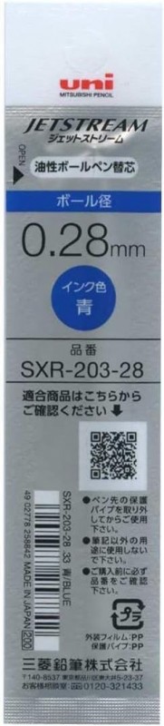Uni Mitsubishi Pencil Jetstream Edge SXR-203-28.33 Ballpoint Pen Refill, 0.28, Blue