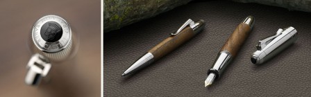 The Rollerball Pen Magnum combines modern design with natural elegance. Featuring a rounded cap and a black inlay adorned with the count’s coat of arms, this refined writing instrument is part of the distinguished Magnum series. Its barrel is crafted from individually grained Caucasian walnut wood, known for its deep brown color, durability, and velvety smooth touch.