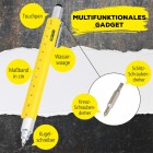 FOR CRAFTSMEN, BASHWORKERS & SCREWWORKERS: In addition to the document-proof standard large capacity refill in blue, this cool gadget has a touch pen function, a spirit level, a Phillips and slotted screwdriver and a tape measure.