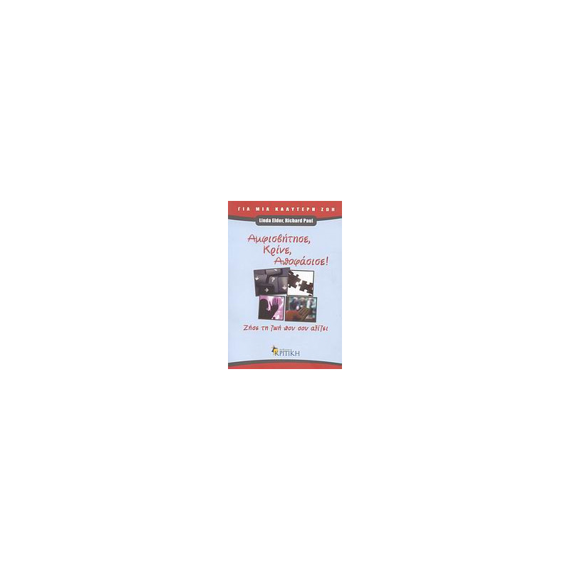 Η κριτική σκέψη σάς βοηθά να αξιολογήσετε σωστά τα μηνύματα των διαφημίσεων, των πολιτικών, του προϊσταμένου σας, ακόμη και των ανθρώπων του κύκλου σας. Μάθετε να κάνετε τις σωστές ερωτήσεις. Αντισταθείτε στις πιέσεις και στη χειραγώγηση. Μη συμβιβάζεστε. Αποβάλετε τους παράλογους φόβους και τις ανησυχίες σας. Γίνετε πολίτης του κόσμου. Πάρτε τη ζωή σας στα χέρια σας!