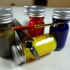 Includes 6 colored bottle inks, 2 brushes and a pen holder with a nib.
