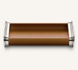 Highly polished metal parts and grained calfskin leather sheaths set these desk accessories apart.