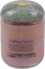 Τα αρωματικά κεριά Heart and Home έχουν σαν βασικό συστατικό την φυσική οργανική σόγια. Η σόγια είναι ένα φυσικό προιόν που η καύση της επιτυγχάνεται σε χαμηλότερες θερμοκρασίες και έτσι δημιουργεί μια ευχάριστη ατμόσφαιρα που δεν είναι αποπνυκτική. Η χαμηλότερη θερμοκρασία καύσης έχει σαν αποτέλεσμα μεγαλύτερη διάρκεια καύσης των κεριών και έτσι η μεγάλη συσκευασία διαρκεί πάνω από 75 ώρες. Ένας πλούτος αρωμάτων αναδύεται, μόλις ανοίξεις το καπάκι, προτού καν ανάψει το κερί. Η εμπειρία είναι μοναδική και είναι βέβαιο ότι θα θέλεις να την μοιραστείς με αγαπημένα πρόσωπα, διαλέγοντας ένα από τα σαράντα αρώματα μέσα από τις εκπληκτικές συσκευασίες της Heart and Home.