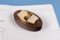 The wooden base functions as a chamber for shavings as you sharpen and looks great on any desk.Machined from dark Walnut, the wooden base is the perfect companion to your Høvel.