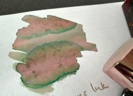 A multi-tonal shading ink that appears light green in the bottle. What colour it comes out depends entirely on the pen and paper combination it is used with. Light greys, olives and ambers, separating out into pinks, lues and greens. Try this ink on a variety of papers to see its full spectrum.